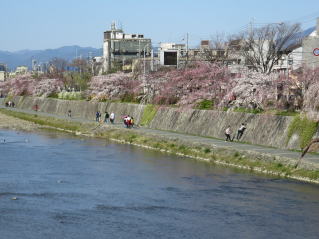 | 豊国神社のすぐ前に 「耳塚」 鴨川には 早咲きの枝垂れ桜?が 満開近し! |