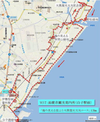 | 車を200mほど離れた AEON(サンズ)に止める 「白子(しろこ)駅」西口 ・・ 東口前は何度か歩いているが こちら側は初めて 駅前は工事中で トラックが何台か停まっていた 前の交差点角に「鈴鹿市観光案内所」 ・・ 入口に「IVV:ウォーキングステーション」の看板 「ウォーキングをしたいのですが ・・ (ここは)初めてきました」 スタッフさんが、コースのポイント説明をしてくれた 13q:「海の見える里山と大黒光屋太夫コース」 ・・ WSTから北の海岸を歩く 11q:「鈴鹿の伊勢街道と伝統産業をめぐる」 ・・ WSTから南の海岸 歩くのは、北回りの13qに、MAPは記念に11qのも貰う 他にも、いろいろなパンフレットを貰った |