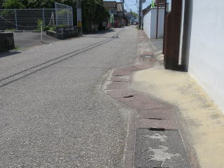 | 八幡宮を出て、本来のコースへ このみちは「長崎街道」 ・・ それらしい面影は、古道らしい道幅くらいだが 舗装色が少し変えてあり 両脇に |