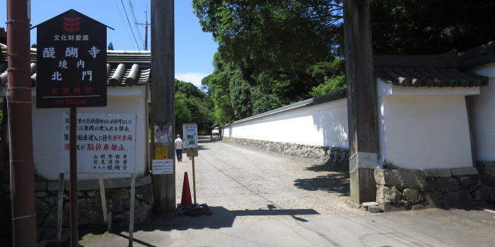 | 「醍醐寺 北門」 北門を入っても 右側には「理性院」の長い塀 |