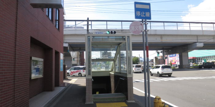 | イオンが確認出来たので 「大通公園」までの 4qほどを 真直ぐ南下 往路でもくぐり抜けた「札樽自動車道」をくぐり抜ける 地下道入り口には 「北34西4(向かい側が5)」 |
