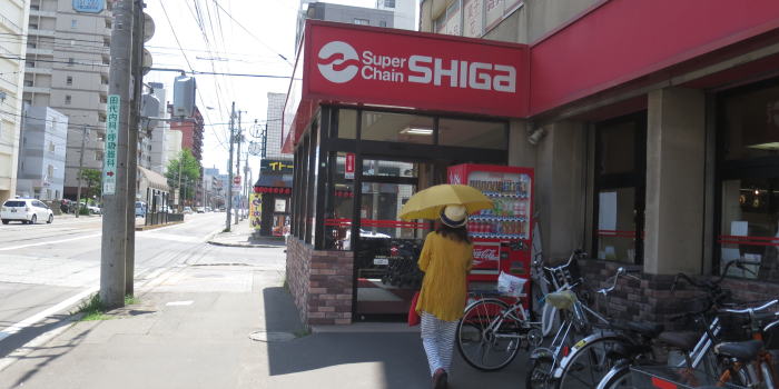 | 「中島公園通駅」向かいの「シガ」横で右折 「シガ」が何か判らなかったが 「Super Chain」だった |