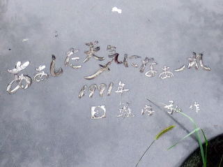 | 「あした 天気になぁーれ」 の題名 ・・ 芸術品らしい 歩道には 「青山記念武道館」の案内プレート 「何の記念?」 と HPを見ると 青山記念武道館は、平成7年に半田青山土地区画整理組合により半田市に寄贈された、 大道場・小道場・3つの会議室を有するスポーツ施設です。 どうやら、「土地区画整理」の記念らしい |