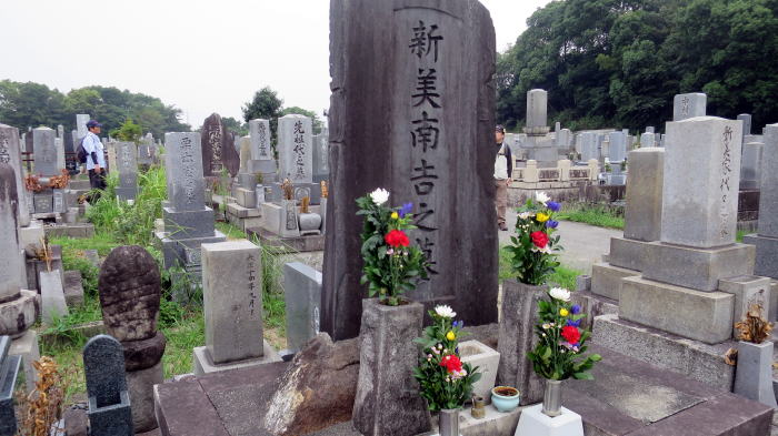 | ひときわ大きな墓が「南吉之墓」だった ここにも 新しい花が供えられていた |