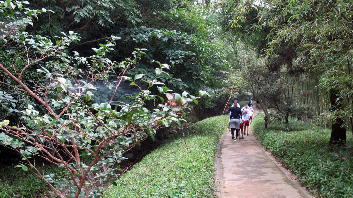 | 園児たちも 組ごとに 森の中を散策? 引率の先生たちが 一番疲れる日? |