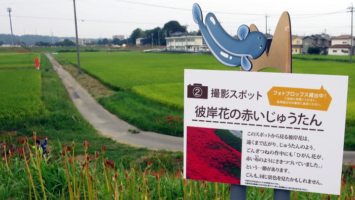 | 「撮影スポット A」 ごんぎつねの作中にも「ひがん花が、赤い布のように咲きつづけていました」 |