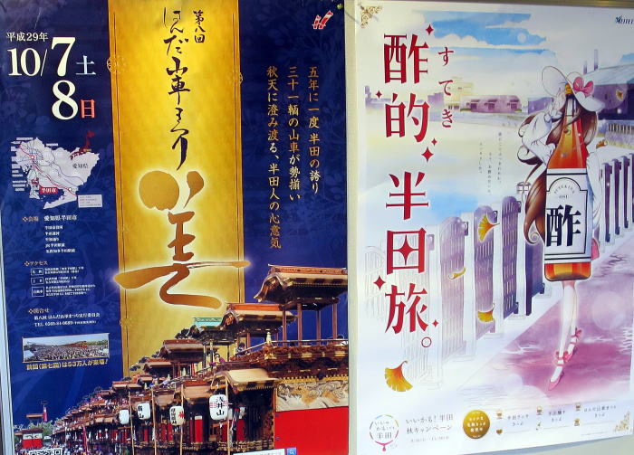 | 入り口の ポスター 「酢的(すてき)半田旅」が、クラッシクな印象で 当時の物かと思ったが 「MEITETU」や「平成29年 10/7土 8日第8回 はんだ山車まつり」 の文字 |