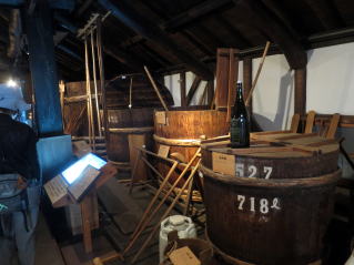 | 案内のお嬢さんが要領よく 説明してくれる 食用とお酒用のコメの違い 大吟醸酒は5割以上コメを削って、スッキリ感を出す 削ったコメは、団子や煎餅の材料に使うので無駄はない 昔は、この建物で お酒造りをしていて、この2階の展示室は、倉庫になっていた 大樽は使った後、2階に上げたが 「後光滑車を使って、上げ下げした」 ・・・ |