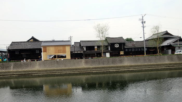 | 見学を終え 仮ゴール手続きで IVVを受取った JR半田駅 (一部の人は名鉄:知多半田駅)に向かう お隣の「半六庭園」を抜けて 「半田運河」に この運河沿いの黒塀も撮影スポットだが 「酒の文化館」見学も終え まっすぐ、ゴールを目指す 半田市役所は この黒塀の300mほど先にある |