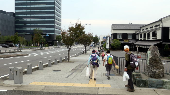 | 940 初めて来た「名鉄河和線:青山駅」は 立派な建物だった 1000 出発式の冒頭で 「重要なお知らせです JOC中部支所はスタッフが手薄となる為、来年の活動を休止します。 会員の更新手続きが始まりますが、それを踏まえて検討をお願いします。」 ・・ 愛知県では貴重な 「平日例会」 が無くなるのは残念な事だ 「本日はコース終盤で、國盛 酒の文化館 に入りますが、遅めの 1430〜 の予約になりました ゆっくり歩いて、昼食時間も長めに取りますがご了承下さい。 ゴール予定は、1530 となっています」 1015 ストレッチを済ませて スタート |