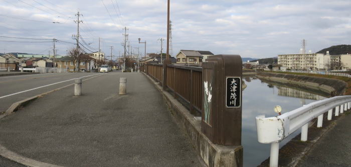 | MAP では右手の 「大津茂川」 の堤防がコースだが、工事中で迂回 「松河橋」 袂で、川沿いのみちに入る |