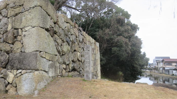 | 「黒田官兵衛の石垣」の案内に誘われて 「リの一渡り櫓」下を東側に回り込み |