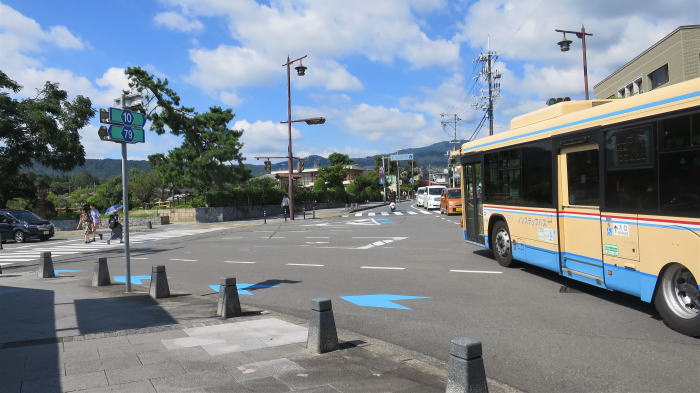 | 突当りを右折 北上 道路標識に ←西国街道→ |