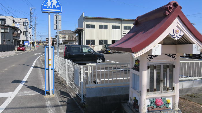 | 住宅地の 美濃路を約1q東進 すぐ右手(南)に並行して 県道が通っている 赤坂本陣以降 (それ以前も 多分無かった) 昼食をゲットしようと 店を探しながら歩くが 県道向かいにあったくらい 夏場 ガリガリ君を探しながら歩くなら 要注意だ |