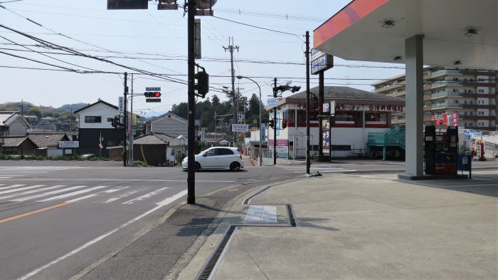| 交差点を通り抜ければ 定番の鬼の俎・雪隠へのみちになるが 交差点で右折し、県道155号で西へ |