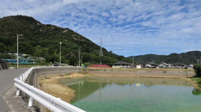 | 赤い屋根の いちご幼稚園 手前の溜池 は予習通り |