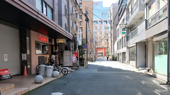 | @ スタートし商店街を通町筋方面へ 「長安寺通」の標識を左折し、「手取天満宮」方面へ アーケードを 200m 市電通りの手前で左折 手取天満宮前で 右折して 市電通りへ |