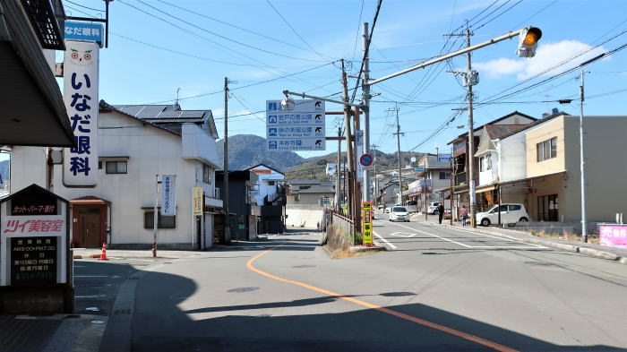 | F ・・・ 「清正公立像」より同じみちを「栄運橋」まで戻り右折する 胸突雁木 上りきった両側に宿屋も 営業中は1軒だけのようだ |