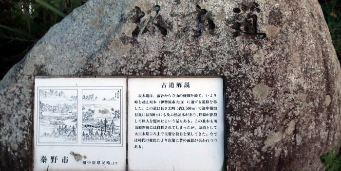 | 1721 大きな桜の木とその下に 大小の石碑が立っている。 小さな石碑に坂本道古道の説明が書かれている古道である 坂本道に 古道解説 コース確認OK |