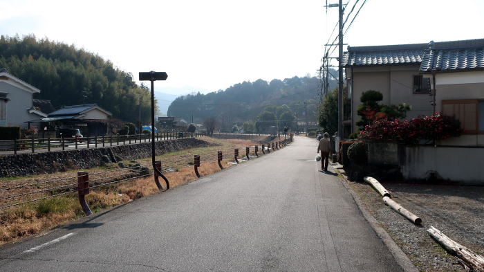 | A 文武天皇陵前の下り坂を西に向かう 商店のある村道交差点を左折し、900mほど上り坂を進む 2DWでも使っていた 休憩所(文武天皇陵)を回り込み 下り坂を西(右手)に 向かう |