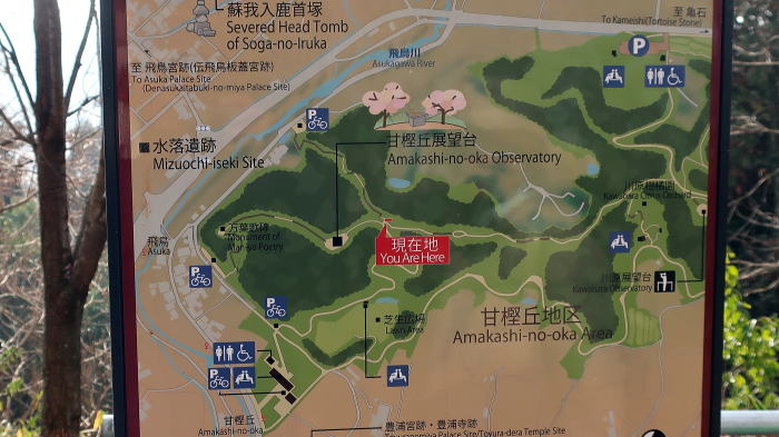 | 園路を上ってきたが 甘樫丘展望台は 左手 川原展望台は 右手(看板の右端) 甘樫丘展望台は 2日目コースに入っているので このままスルーした |