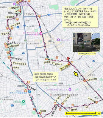 | 1047 身支度を整え スタート MAPは JWAHP掲載版からの変更はない 裏面には コース説明:@〜26. @ SWA事務所よりJR線に沿って南浦和方面に向かい直進 |