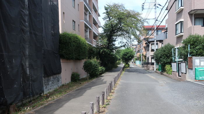 | 幾つかの 四阿・休憩所もある 並木の途切れる部分もあり 真夏に歩くのは 少しつらい この日 昼間は晴れ予報だったが 時おり 日傘を差す程度で済んでいる |