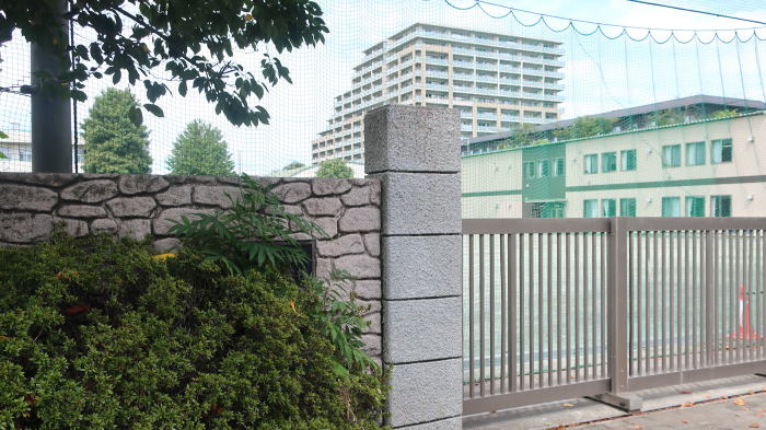 | ここが だらだら坂上の 変則十字路 左折の先に 小学校の運動場 |
