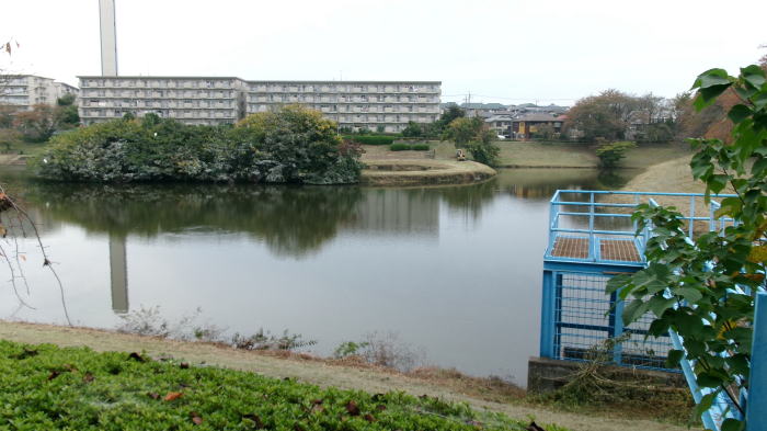 | O 小畔川水鳥公園 駐車場脇 WC 約4.8q 土手から一段上がると 公園の池が見えた |