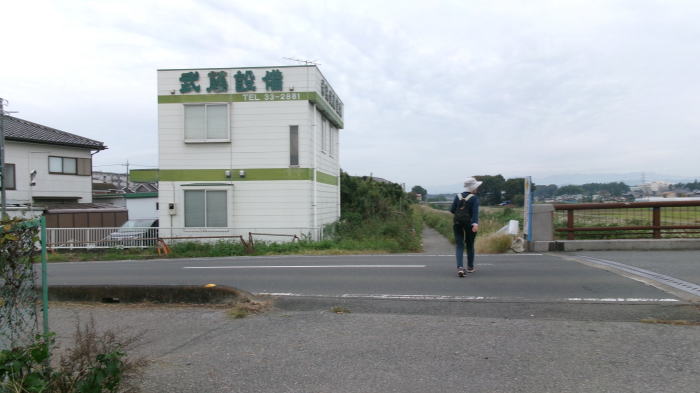 | 25.田谷たや橋 (川越いもの子作業所 グリーン屋根) 直進 作業所は 対岸にあった |