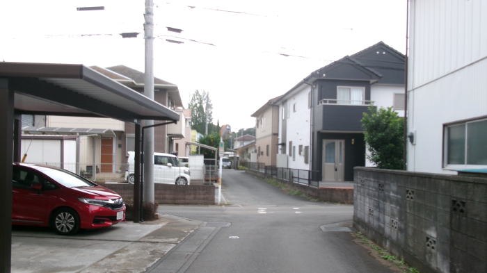 | 350m 進んで左折 住宅地を通り過ぎようとしたが 工事中の更地に出て 更に右手に迂回 |