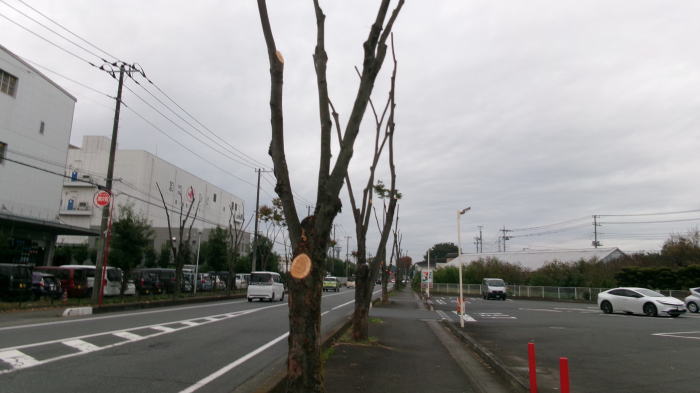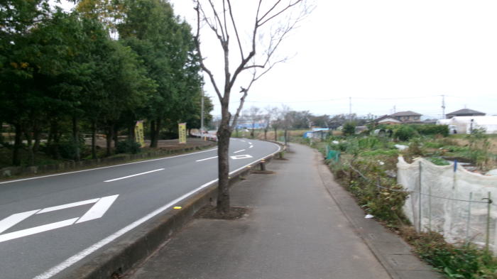 | 39. 十字路 信号 (ベイシア スーパーセンター) 渡り 右折 400m 南下し 十字路右折し 市道1015号線を道なりにカーブし西北へ この街路樹は 一枚の葉っぱもないが大丈夫なんだ |